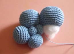 3 . 2 段目からはP335 の編み図のように編み進め,パーツの大きさに合わせて3 段目から減らし目をしたり,4 段目から減らし目をして球に仕上げ,最後に綿をきっちり詰めて閉じる.
