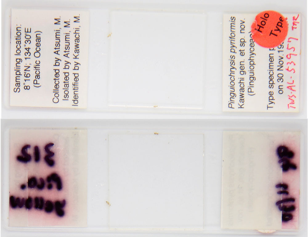 Kawachi, M., Atsumi, M., Ikemoto, H. & Miyachi, S. 2002. Pinguiochrysis pyriformis gen. et sp. nov. (Pinguiophyceae), a new picoplanktonic alga isolated from the Pacific Ocean. Phycol. Res. 50:49-56.