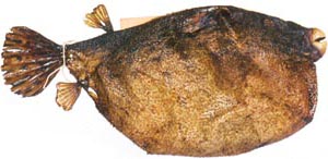 そして、待望のタイプ標本が届いたので、慎重に調べてみました。確かに壊れやすい皮1枚でした。採集されてから150年以上が経過しているので、一見しただけでは色彩もよくわかりません。しかし、強力な透過光を使って顕微鏡の下で観察すると黒色縦線の数と走行パターンを確認できました。さらに幸いなことにタイプ標本の鰭の条数も数えることができました。こうして石垣島の標本はCantorが記載した種と同一であることがわかったのです。残念ながら新種ではなかったものの、実に124年ぶりに採集された標本でした。 |